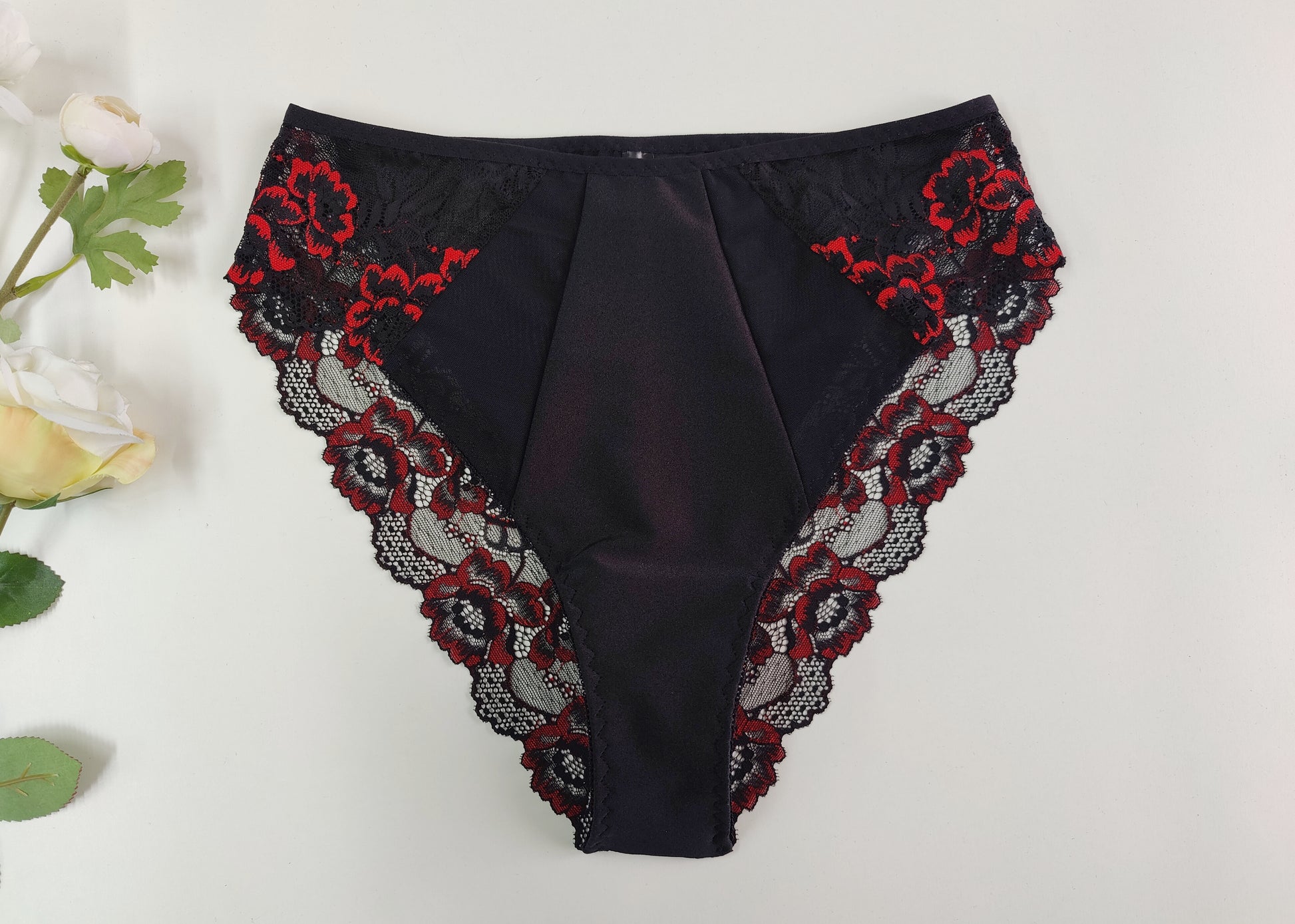 Black and red lace high rise Tanga panties. Perfect to match with Alice bra