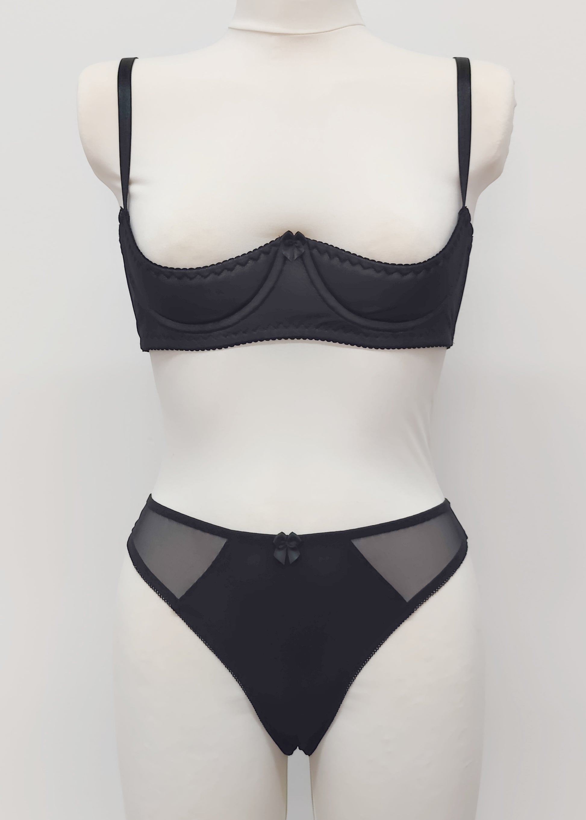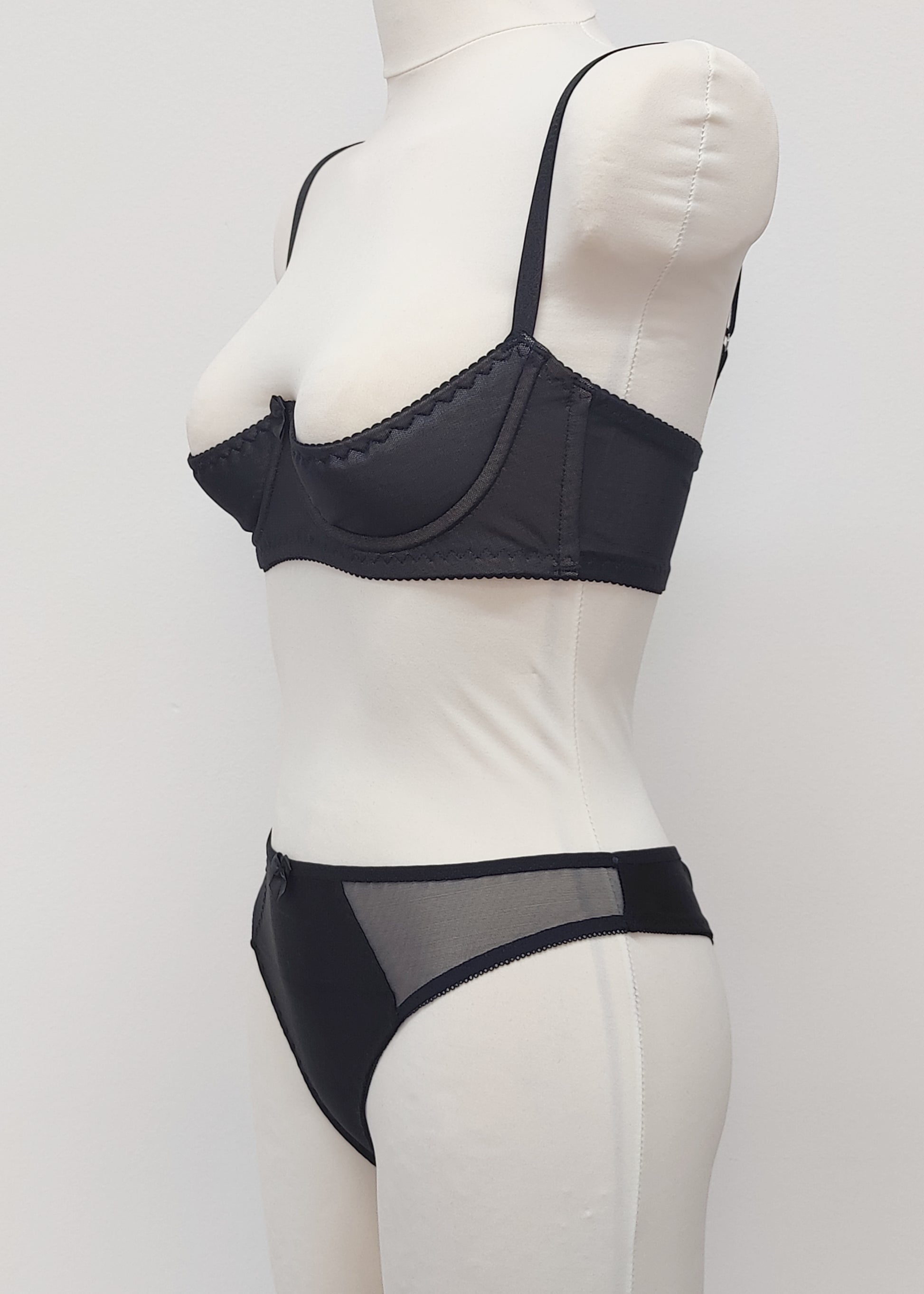 FABRIC: Lycra mid front and back panel, with sheer mesh side panels and 100% cotton gusset.