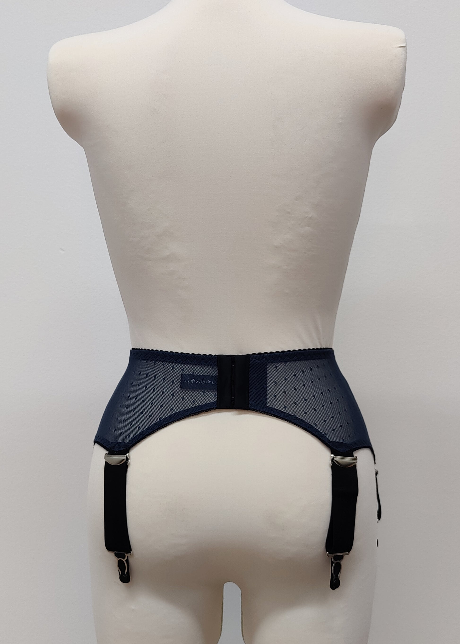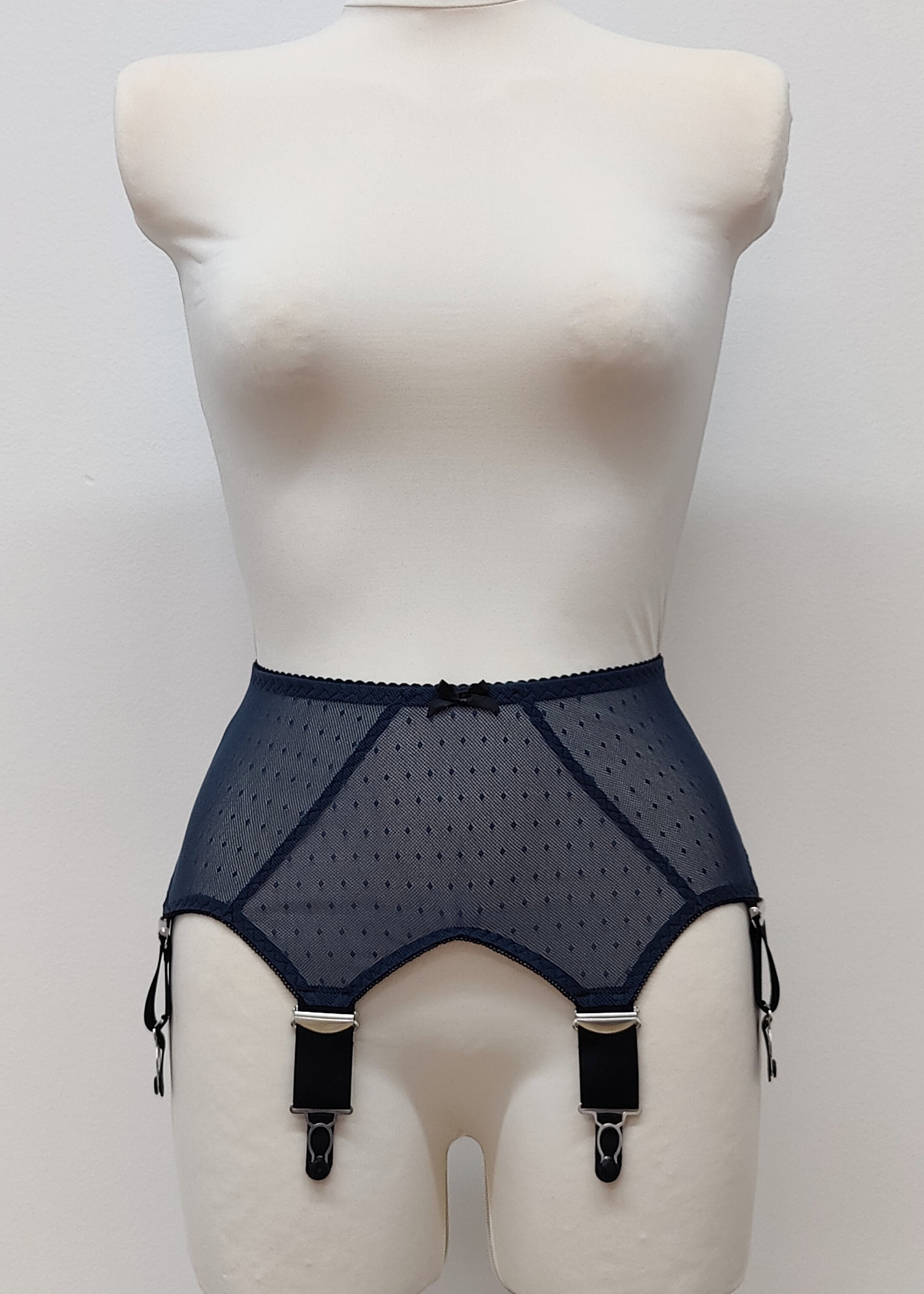 Thelma is wide retro style garter / suspender belt with 6 extra wide adjustable straps, with high quality vintage style grips and regulators, comfortable stretch mesh fabric, adjustable hook and eye closure on the back.